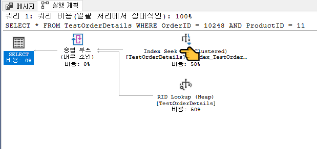 2번 역시 Index Seek, 경제적인 방식으로 인덱스를 찾아준다.