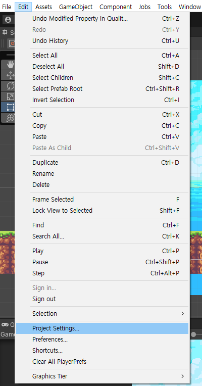 Project Settings에 들어간다.