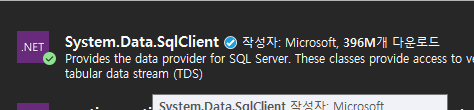 3. NuGet 패키지 관리자에서 Microsoft.Data.SqlClient 최신 버전 설치하기