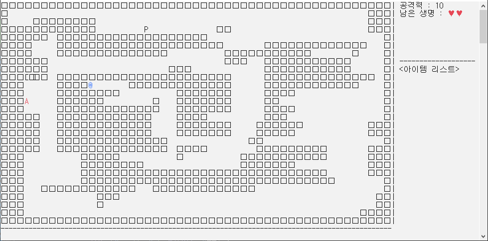최종 맵 player는 기존과 마찬가지로 방향키를 통해 움직이고 스페이스바로 공격한다.