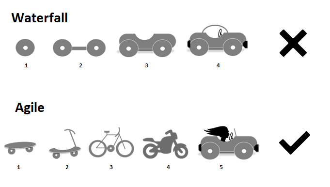 애자일은 software를 개발하는 방식 중 하나다. 이전에 설명한 폭포수 방식과 개념적으로 반대되는 방식이다.