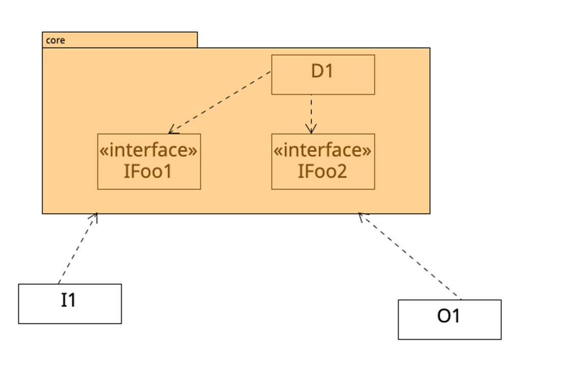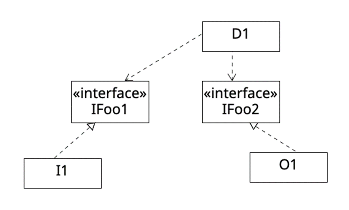 예를 들어 위 클래스 다이어그램처럼 설계하는 것이 옳다. 이때 D1은 Plus처럼 핵심 로직이고 IFoo1과 IFoo2는 핵심로직에 도움을 주는 low level module이다.