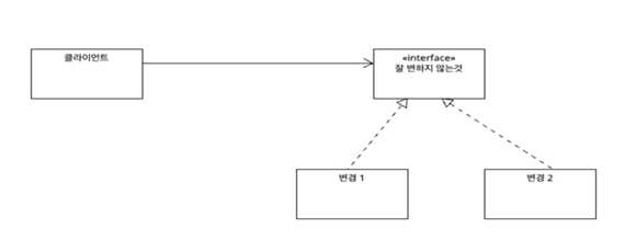 사람이 사랑하는 동물은 바뀌지만 사람이 동물을 사랑한다는 사실은 변하지 않는다. 이때 사람이 동물을 사랑한다 ➡️ 를 interface(또는 abstract)로 만들고 / 개 extends 동물 또는 고양이 extends 동물 등등처럼 interface를 확장하여 클래스를 완성한다.