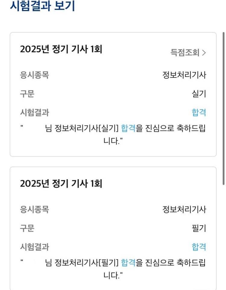 전공자 정보처리기사 1회차 필기 -> 실기 1트 합격 후기입니다.
