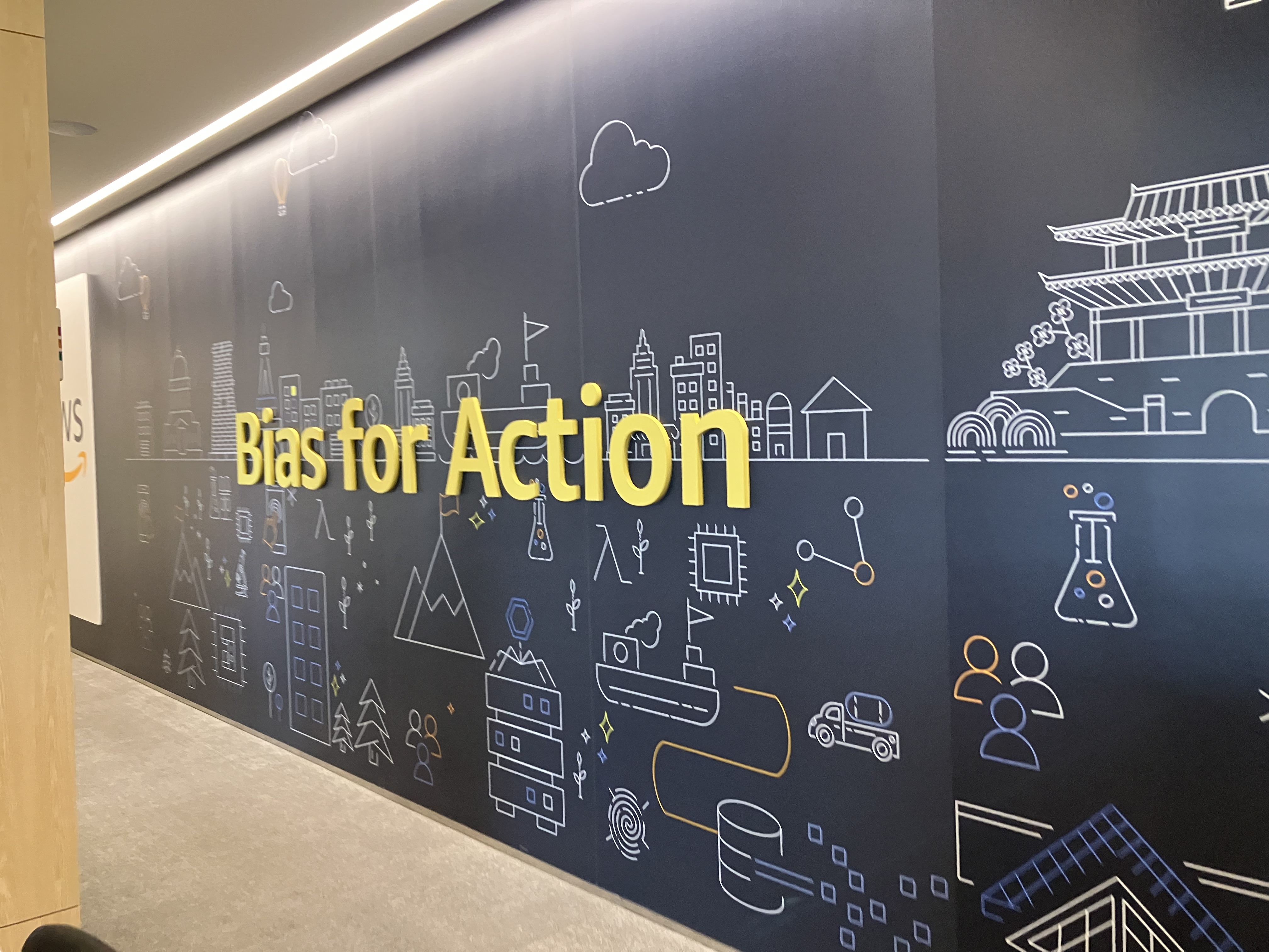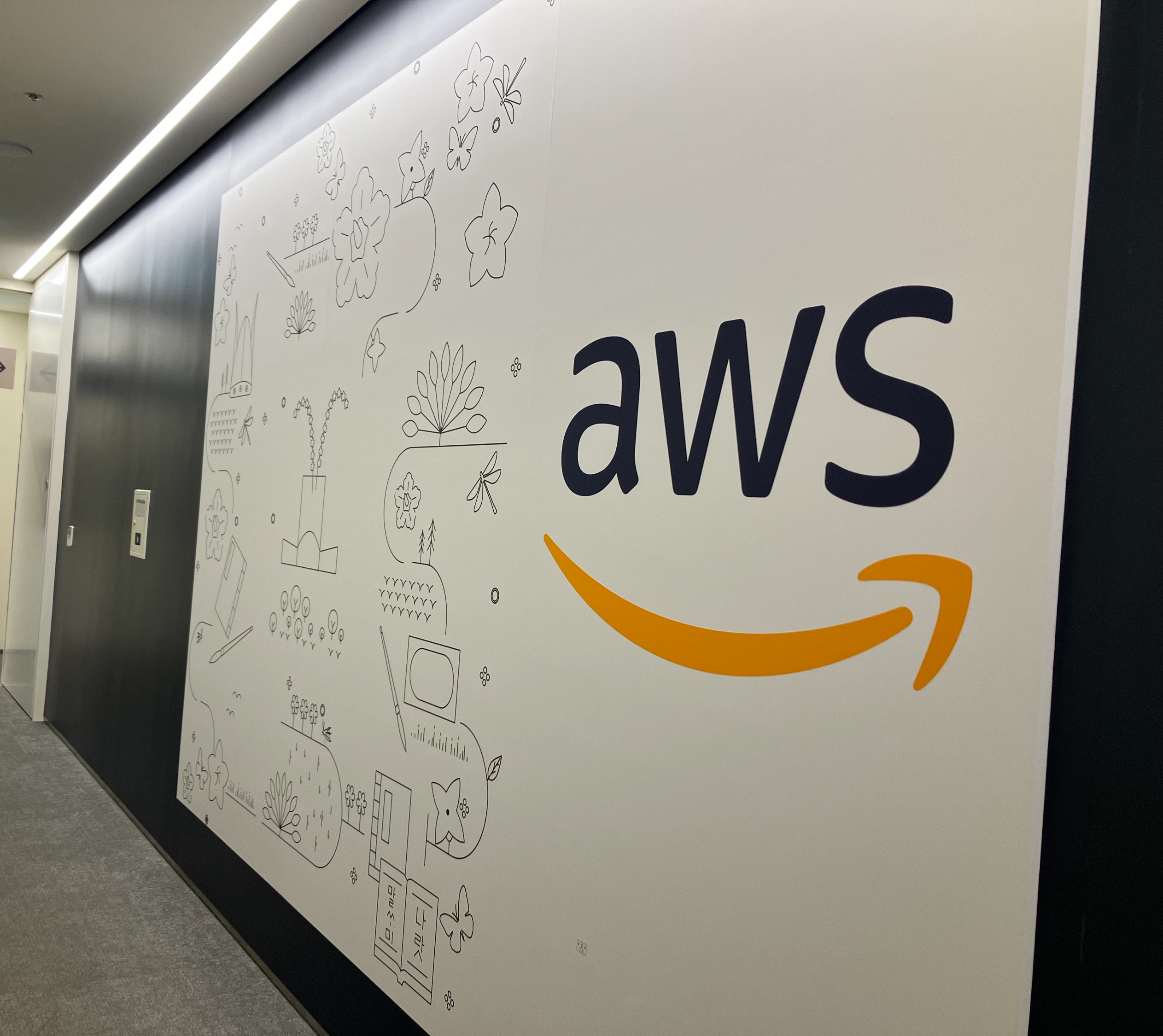 12층으로 이동해 기념 사진을 찍고 너무 짧아 아쉬웠던 강의 시간이 끝났습니다. aws 로고가 보일 때마다 사진을 찍게 되더라구요 ㅋㅋ 하나하나가 신기한 사람~ 사진을 찍고 나가기 전에 이사님께 추천 도서를 여쭤보고 최종적으로 탐방을 마무리지었습니다. 사실 전 아주 매우 과하게 내성적이라 강의 끝나고 강사분께 질문하는 친구들을 참 멋있다고 생각한 적이 많았습니다. 아무리 멍청한 질문이라도 말할 수 있는 사람으로 성장한 것 같아 아주 작지만 뿌듯한 순간이었네요.