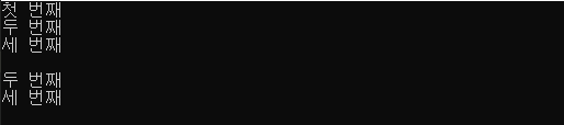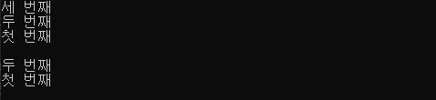 가장 나중에 들어온 값인 '세 번째'가 빠졌다. 값이 들어오는 순서가 queue와 정반대이다.